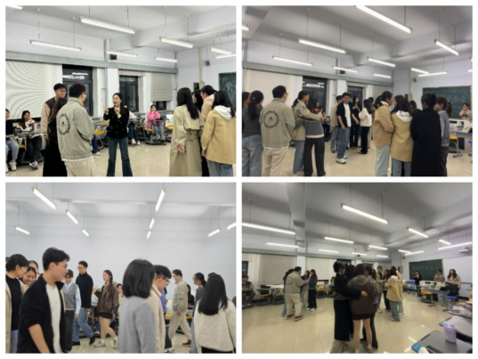 第一个环节由主席团成员焦瑞雪李静和张金月主持,所有学生干部参与到一元五角抱团取暖的游戏中,在游戏过程中,成员们互相介绍,彼此熟悉,在一次次的抱团拥抱中不断破冰,教室里洋溢着欢声笑语。