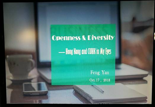 2018年10月17日,公共外语教育学院大学英语第七党支部组织全体党员教师开展了“教书育人、不忘初心”主题党日活动。本次活动由支部委员冯彦教授做香港中文大学访学汇报与见闻分享,并邀请院党委贺强书记及第七教研室部分非党员教师参加。冯彦教授以“开放、多元”为题目全方位、多角度地谈了自己眼中的香港及香港中文大学。她认为香港是一座“开放包容、兼容并蓄”的国际大都市,香港中文大学很好地实现了“结合传统与现代、融合中国与西方”。她还从科研、教学及香港与内地的文化差异等几方面和大家分享了此次访学的收获与启示,她的报告令参会教师增长了知识、扩大了视野,尤其在专业领域收益颇丰。报告过程中,大家纷纷就自己感兴趣的方面与她进行了互动。