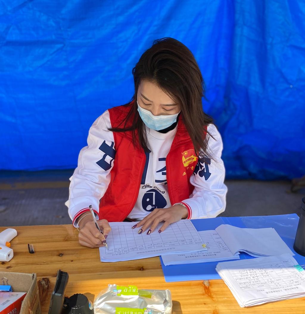 “闲在家里也没事,虽然我家里没有医生,但应该为家乡防疫尽一份力!”, 杨惠津同学说到。她的家乡在福建省漳州市,疫情比较严重。疫情发生后,她马上申请担任漳州市诏安县的志愿者,每天对路口进出车辆和人员信息进行登记,检测体温,协助疫情排查。惠津是一米七几的大个子,在校时每天都漂漂亮亮的,是一名兼职模特,也在学校运动会上大放异彩。现在每天都全副武装,站在马路边做防疫工作.