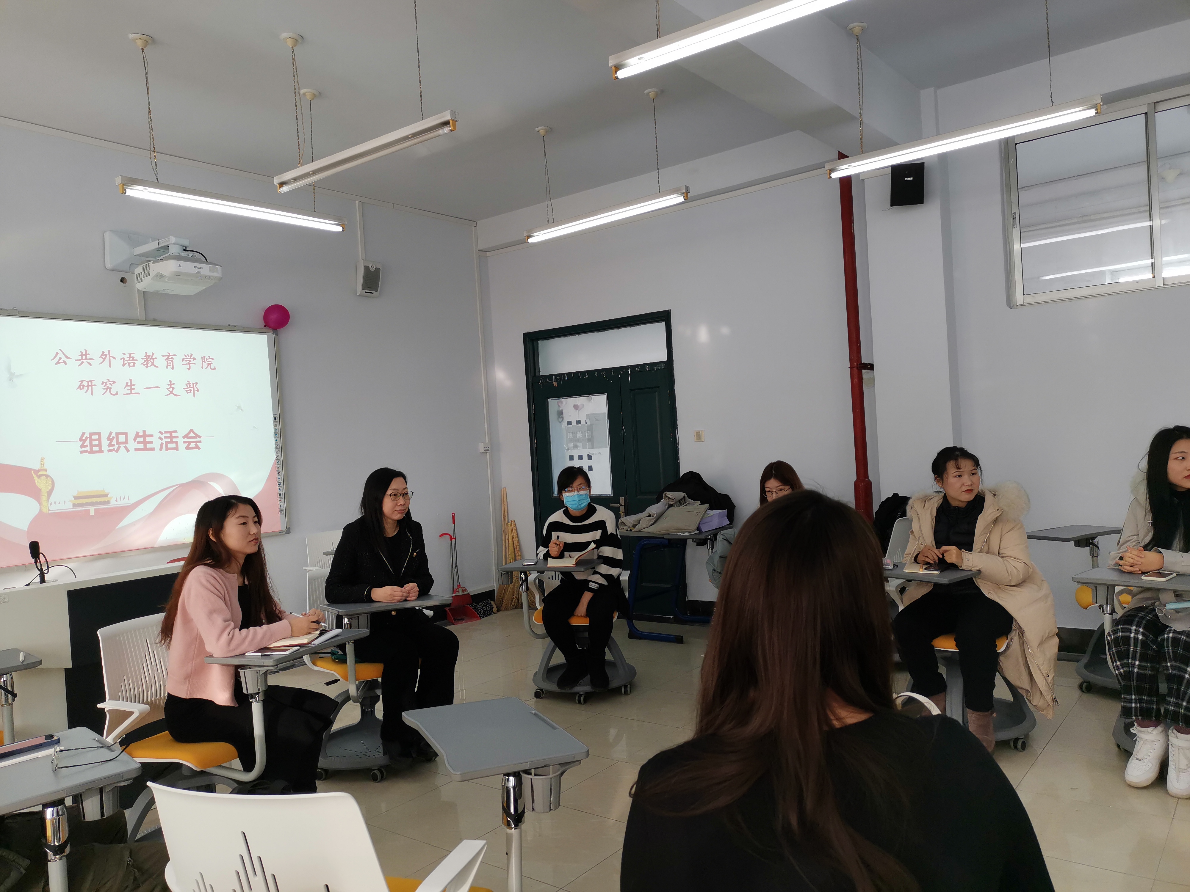 为了高效高质做好我院党员的思想工作,进一步提升党员思想觉悟,2021年1月7日上午9:30在经信楼D401,公共外语教育学院潘海英院长为全体2020级研究生党员讲授了一堂以“理想·目标·行动”为主题的生动党课。
