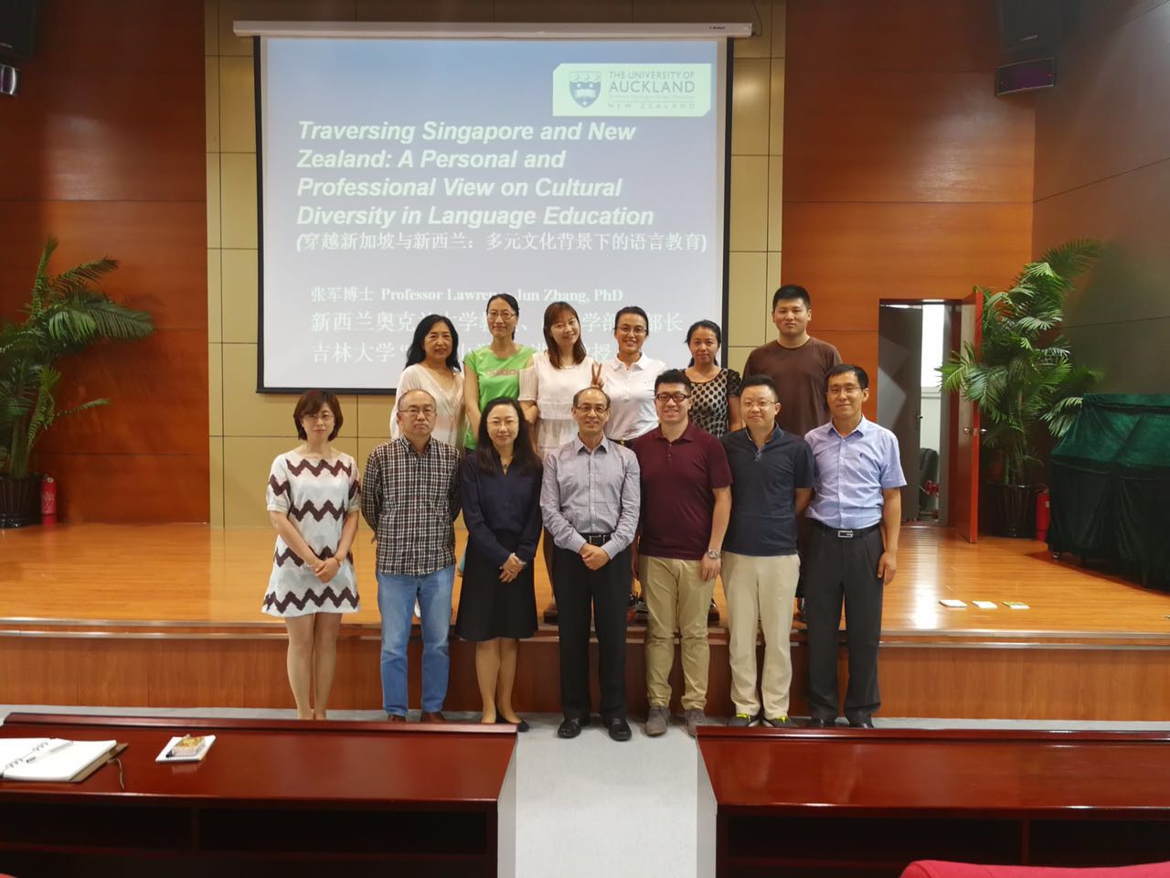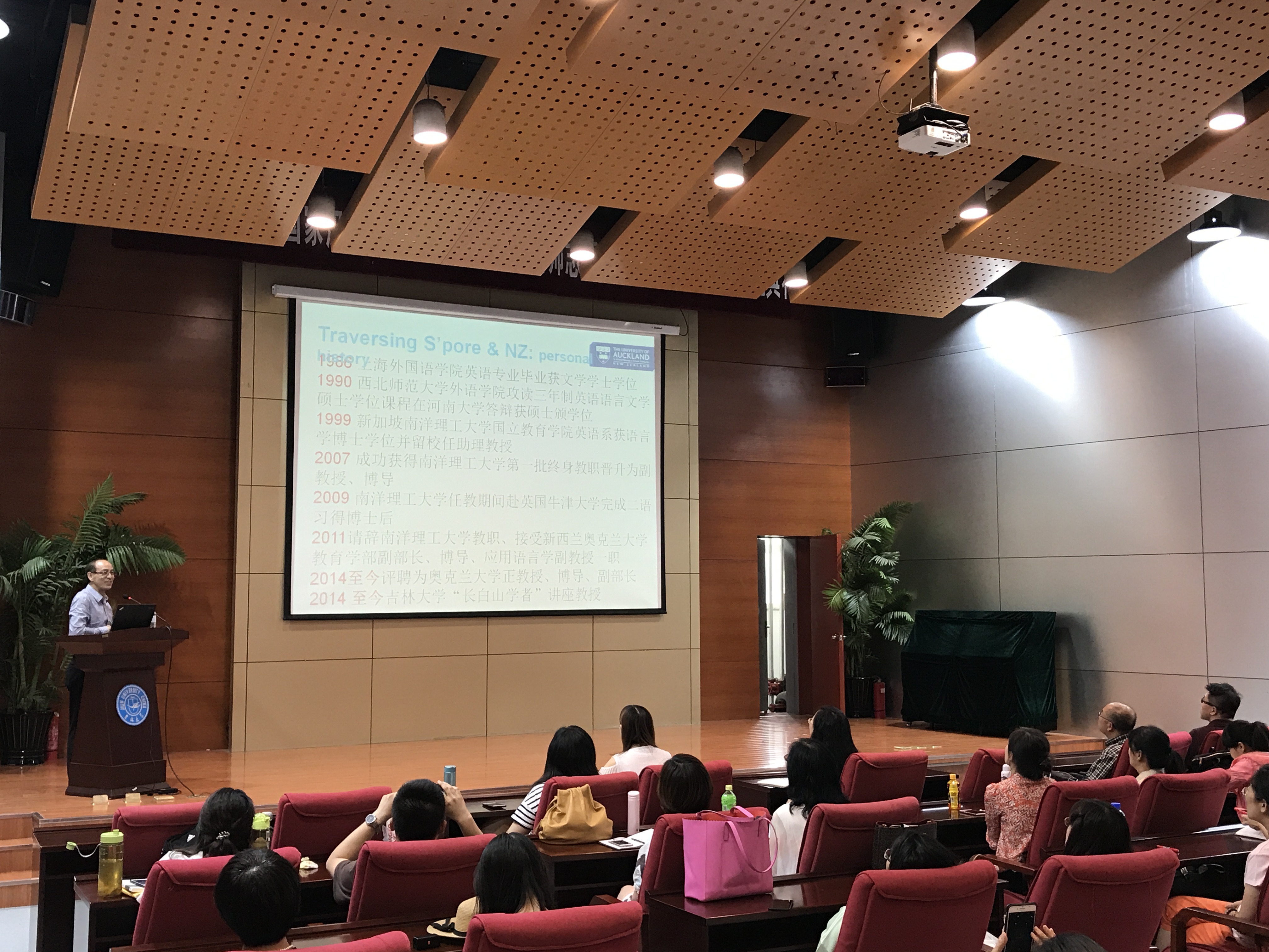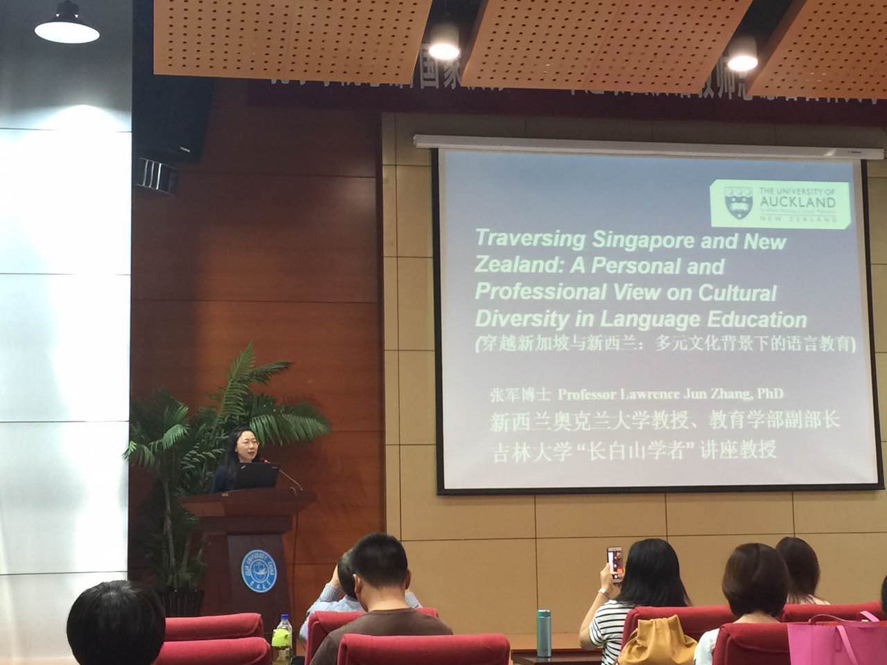 2017年6月23日,由米兰官方版网站登录入口、吉林大学高校外语教育研究中心和吉林大学学生就业创业指导与服务中心共同举办的吉林大学“国际组织人才培养与推送”系列讲座第三讲,暨米兰官方版网站登录入口“国际组织 中国参与”系列讲座在国际大讲堂顺利举行。本次讲座邀请新西兰奥克兰大学教育学院副院长、吉林大学“长白山”讲座教授张军教授为参会的老师与同学们做了题为“Traversing Singapore and New Zealand: A Personal and Professional View on Cultural Diversity in Language Education”(穿越新加坡与新西兰:多元文化背景下的语言教育)的主题讲座。学院院长潘海英教授、副院长王守宏教授和我校师生共同参加了本次讲座,讲座由潘海英教授主持。