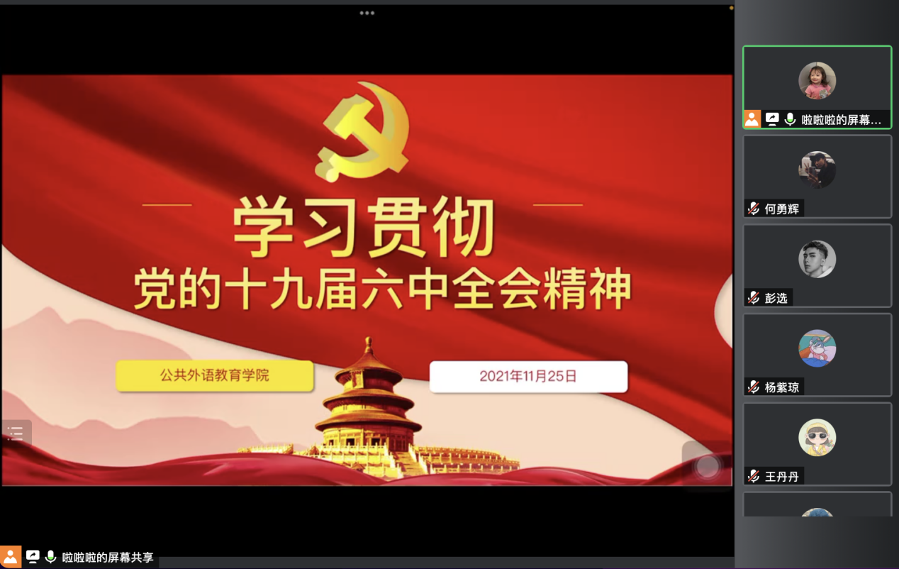 公共外语教育学院研究生“学习十九届六中全会精神”专题活动(三)——学院研究生会深入学习十九届六中全会精神