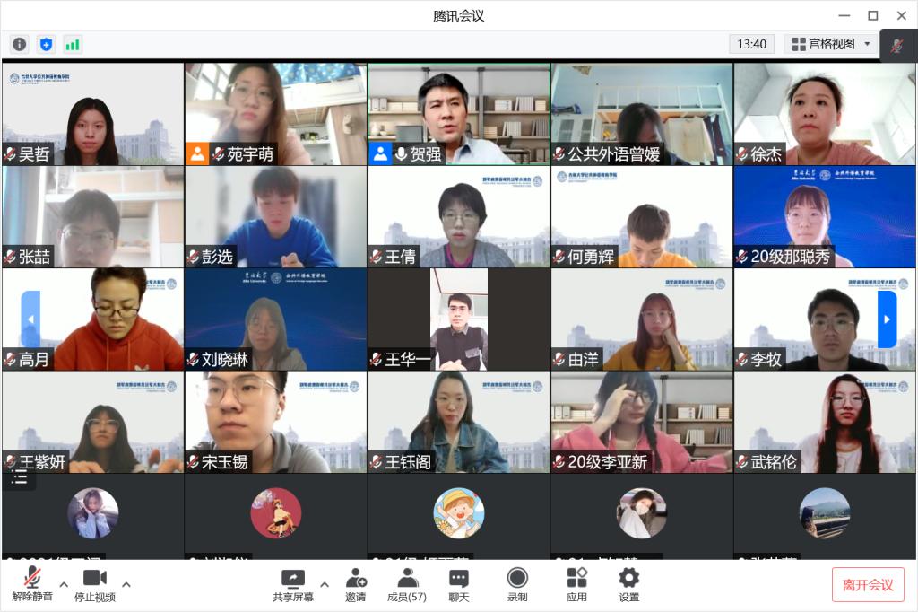 为进一步宣传校园疫情防控政策,有效防范化解风险,构筑校园疫情防控坚固防线,决战决胜抗疫“冲刺期”,公共外语教育学院党委书记贺强于49日下午1500通过腾讯会议为同学们讲授了一堂以弘扬抗疫精神,践行使命担当为主题的学习会。会议由研究生辅导员曾媛老师主持,院党委副书记徐杰列席会议并做总结发言,学院全体学生干部、防疫志愿者和寝室长参会。