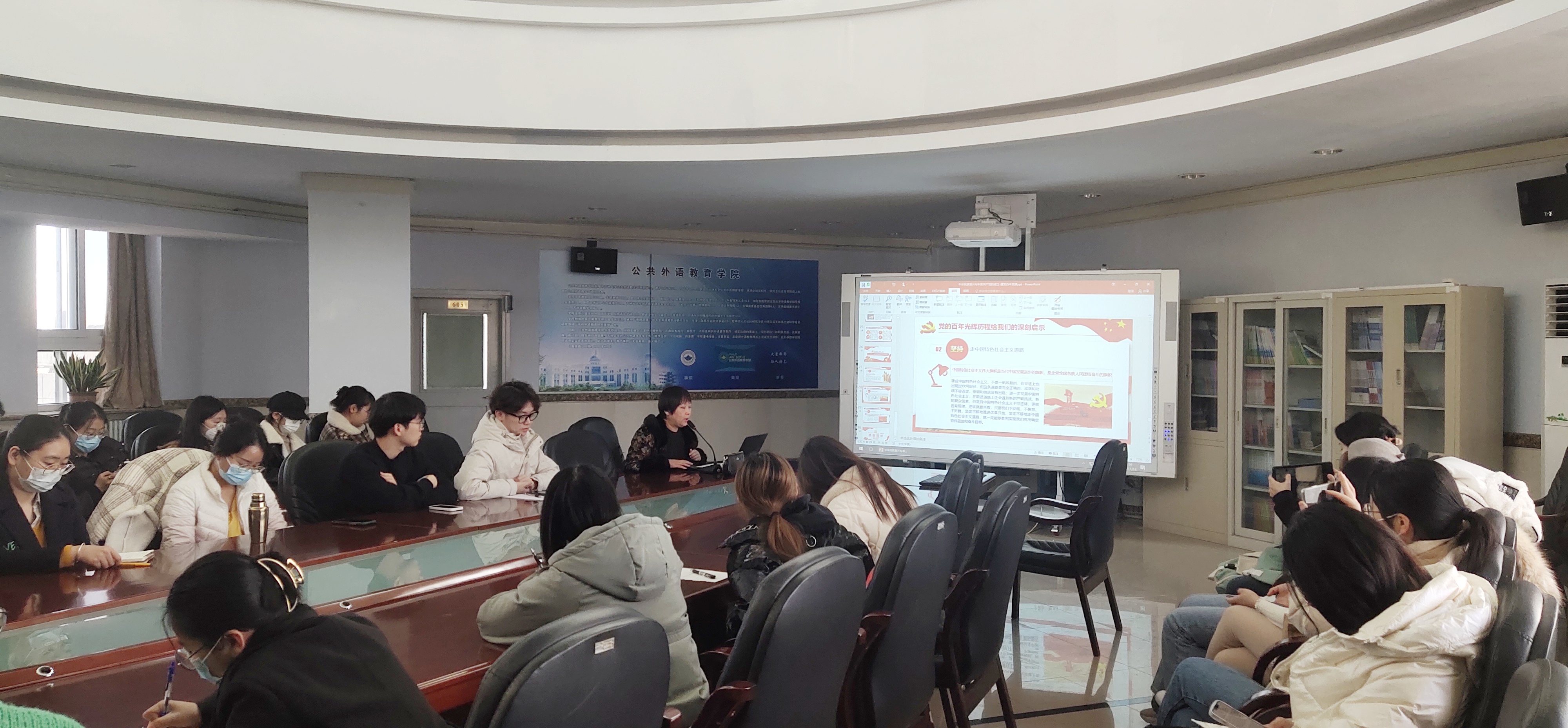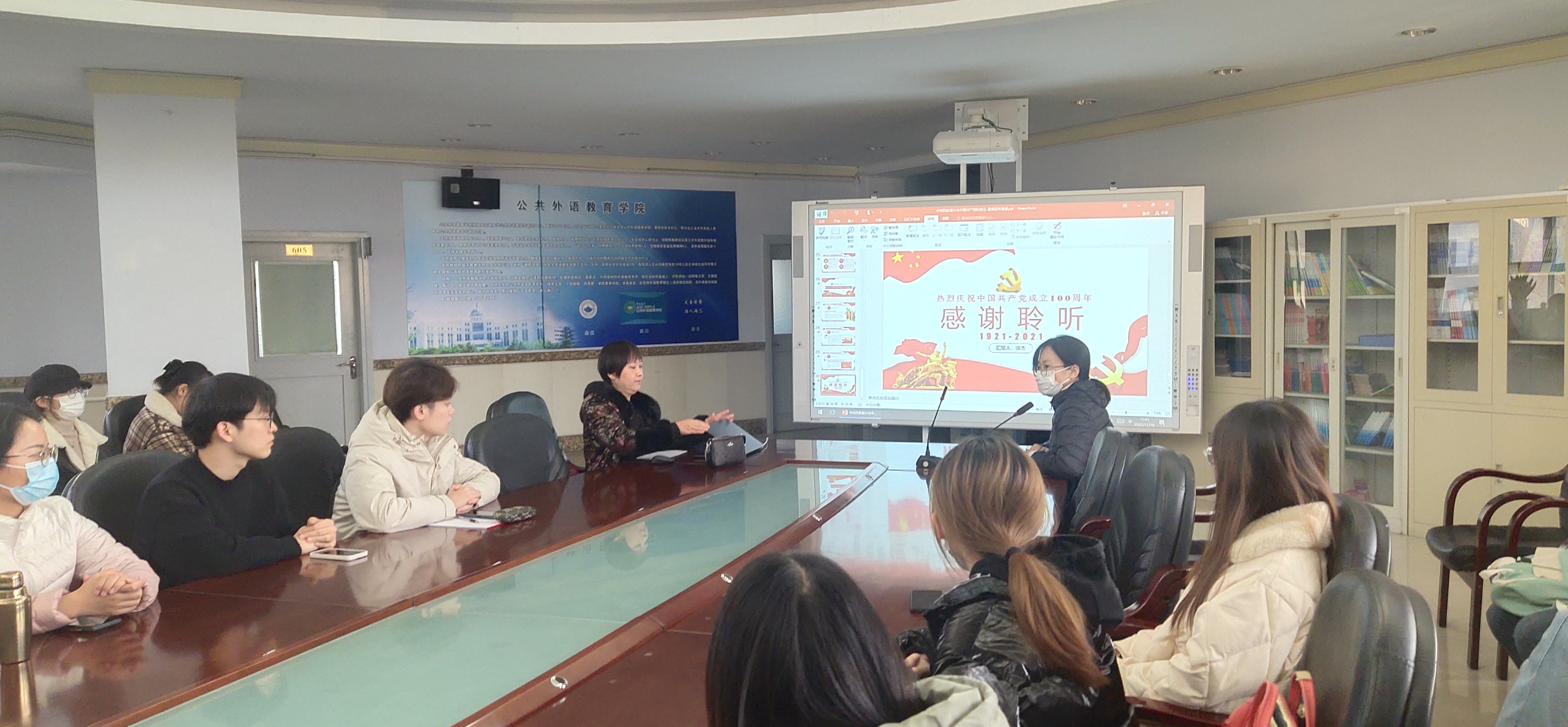 2022年11月18日下午2点,公共外语教育学院在外语楼六楼报告厅开展了以“中华民族复兴与中国共产党的成立”为主题的入党积极分子党课培训。此次党课由公共外语教育学院党委副书记徐杰主讲,研究生辅导员曾媛主持,全体入党积极分子参加。