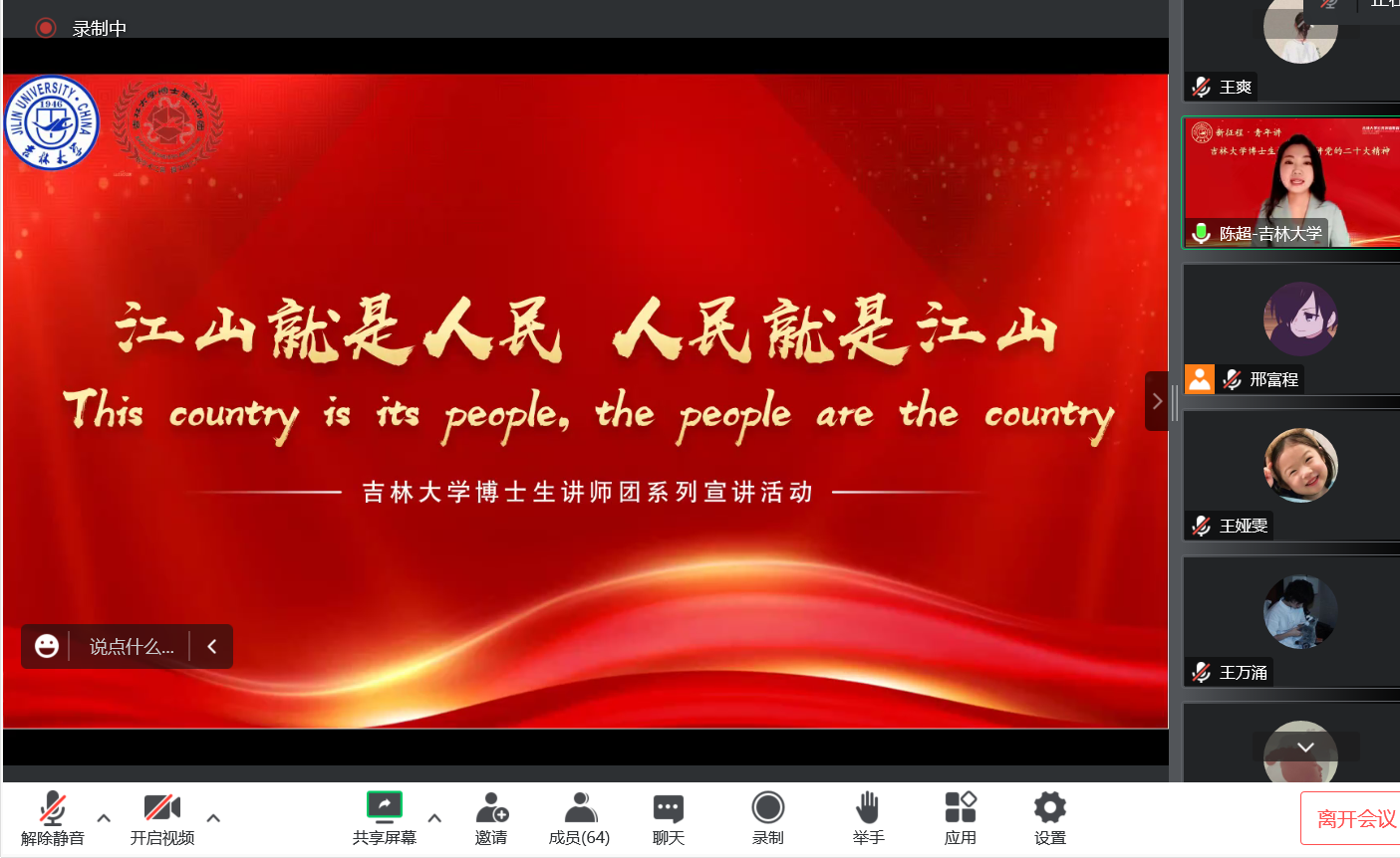 为深入学习贯彻党的二十大精神, 用党的科学理论武装青年,用党的初心使命感召青年,强化爱国爱党意识,2022年12月12日晚,博士生讲师团走进我院研究生三个党支部进行宣讲。本次宣讲由吉林大学博士生讲师团陈超博士主讲,宣讲主题为“增进民生福祉 提高人民生活品质”;宣讲由研会邢富程同学主持, 辅导员曾媛老师列席会议,研究生党支部全体党员参与了此次宣讲活动。