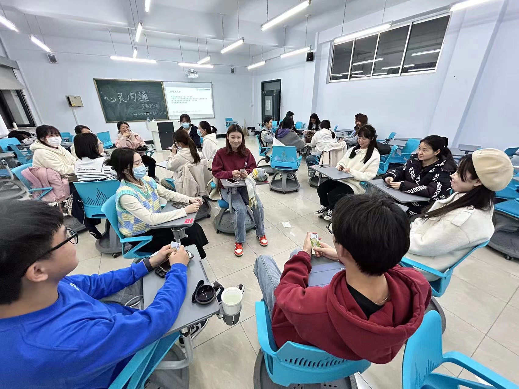 为促进同学间的情感沟通和友爱互助,号召广大学生关注自我及他人的心理健康,公共外语教育学院于2023年4月12日晚在敬信楼D403教室成功举办了“心灵沟通”主题班会,该活动由学生心理健康指导中心和学院心理辅导员指导,心理部成员佟傲主持,2022级研究生参与。活动内容丰富有趣,形式多样,有效缓解了同学们在学习和生活中产生的消极情绪与心理压力。