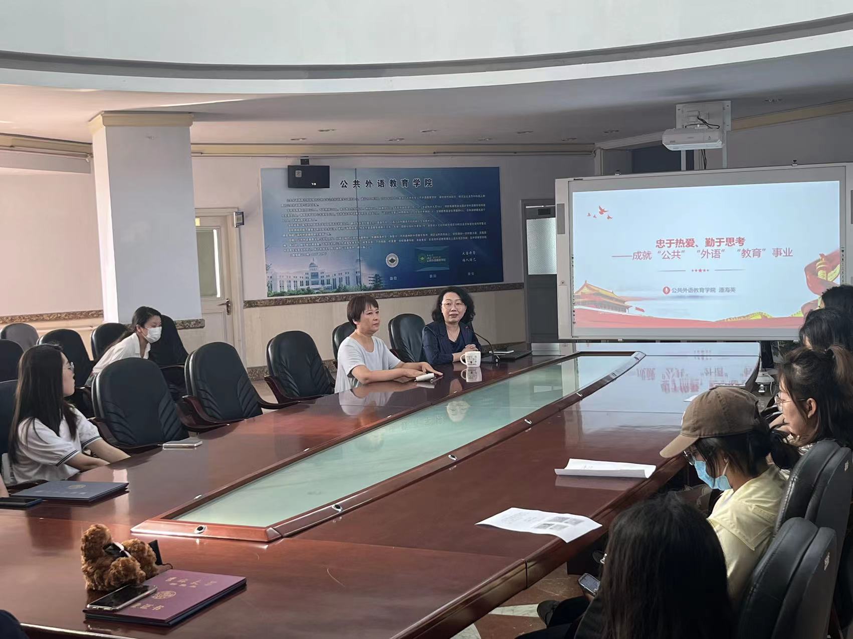 一晴夏深,青春散场。奔赴山海,师恩难忘。2023届毕业生正收拾行囊,以最好的状态迎接新的人生篇章。按下快门,如何更好告别学生身份?鹏程万里,如何担当兴国之重任?2023年6月28日上午9点,公共外语教育学院院长潘海英在外语楼六楼会议报告厅为我院2023届研究生毕业生上了以“忠于热爱、勤于思考——成就‘公共’‘外语’‘教育’事业”为主题的最后一课。此次会议由院长潘海英主持,党委副书记徐杰、辅导员蒋雪微及2023届毕业生参会。