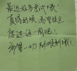 活动过程中,工作人员耐心地讲解活动规则,同学们也积极参与,纷纷书写自己的快乐或烦恼,并给予彼此安慰。虽然临近考试周,同学们依然热情高涨,活动现场十分热闹。同学们互相分享着自己的快乐事,仿佛烦恼已然消散,考试压力也得到了释放。温暖的话语充斥着活动现场,同学们获得了情感支持和共鸣,不但学习到了有用的心理调适技巧,更提升了人际沟通和团队合作能力。